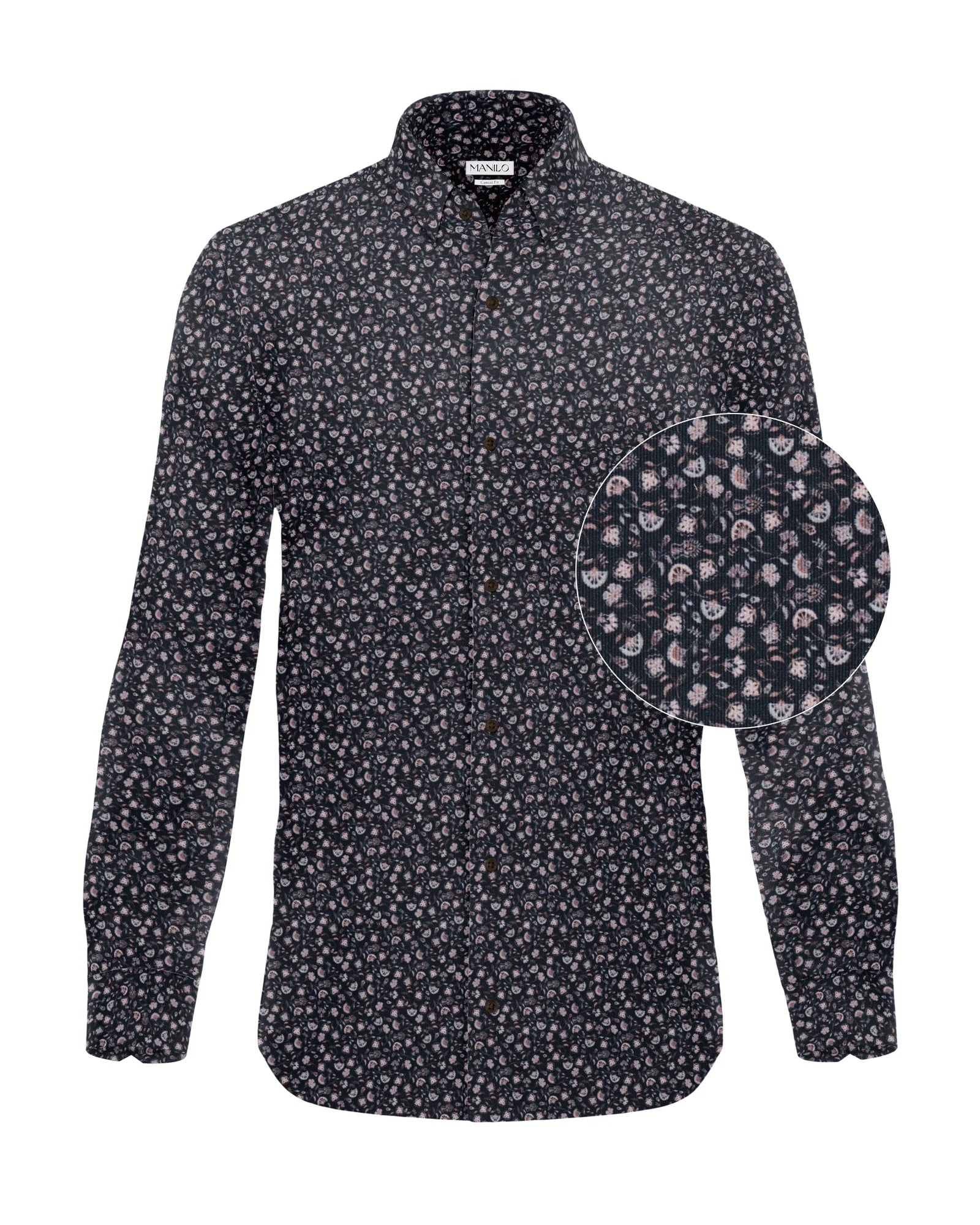 Manilo Herren Cord-Hemd mit Blumenprint