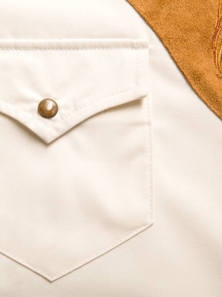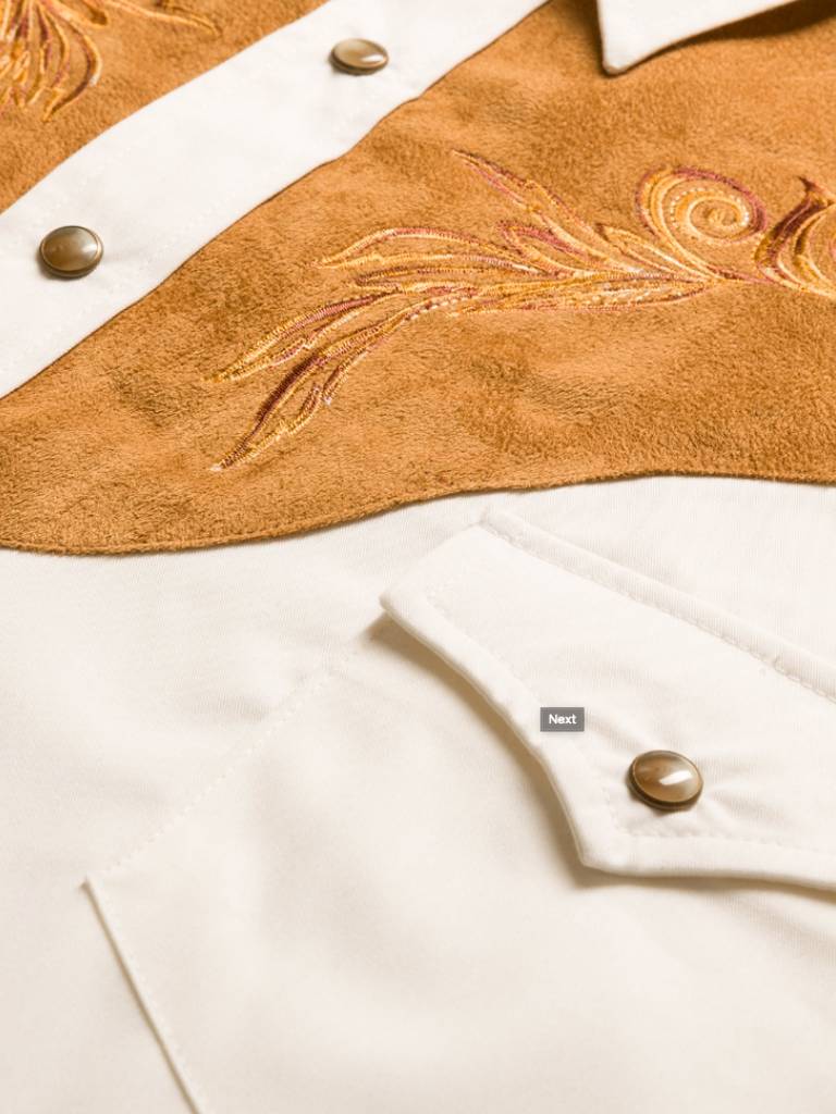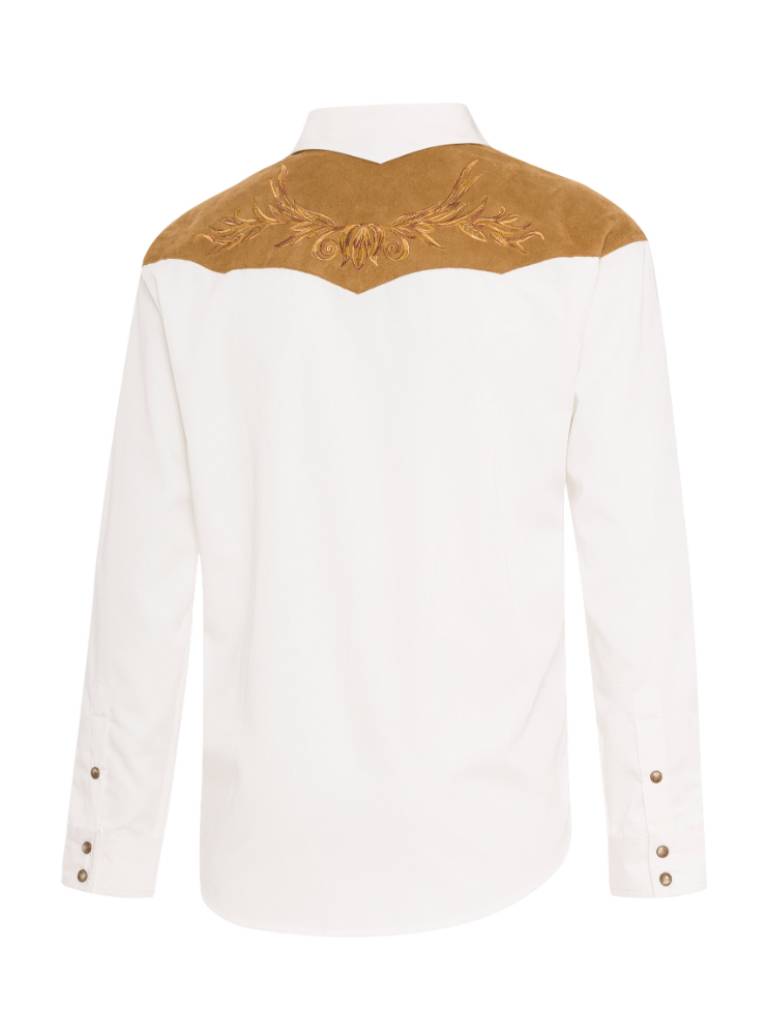 Stilvolles Westernhemd mit Schulterbesatz im Wildleder-Look und dekorativer Stickerei. Ausgestattet mit Brusttaschen und Druckknöpfen.